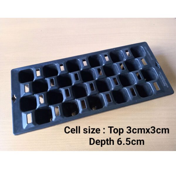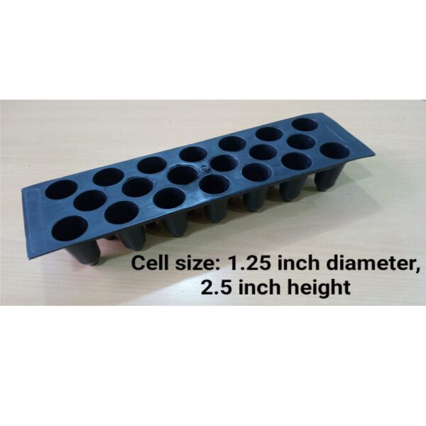 Seedling Trays - 22 Cells (Reusable) Tray Dimensions - Length 12 inch, Width 5 inch, Height 2.5 inch Cell Dimensions - Length 3 cm x Width 3 cm x Height 6.5 cm