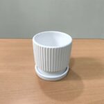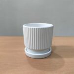 Ceramic Pot Round Straight Lines Design – White Colour, Matt finish